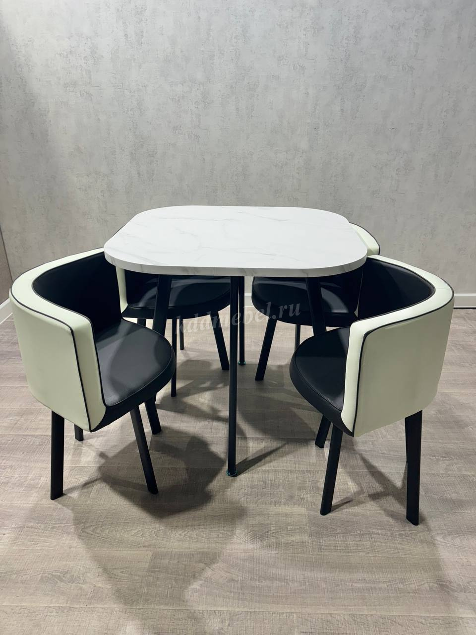 Обеденная группа DT/DC-804 (Белый мрамор/Бело-черный/Каркас черный) наличие товара: