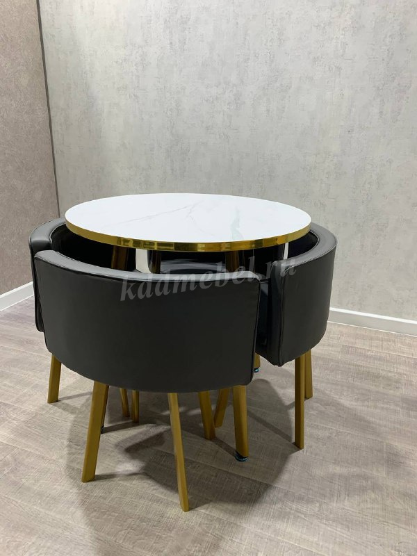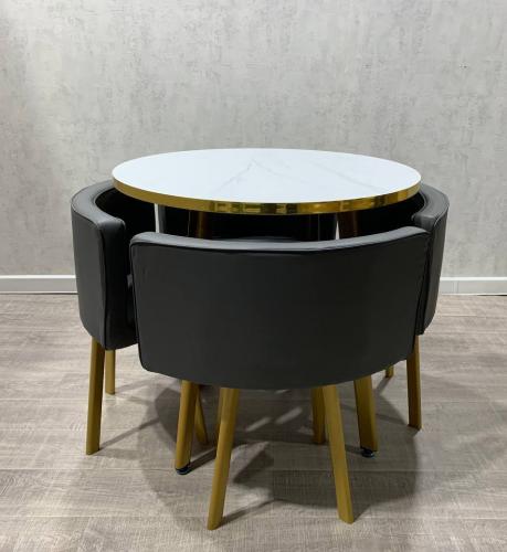 Описание Обеденная группа DT/DC-805 (Белый мрамор/Серый/Каркас золотой)