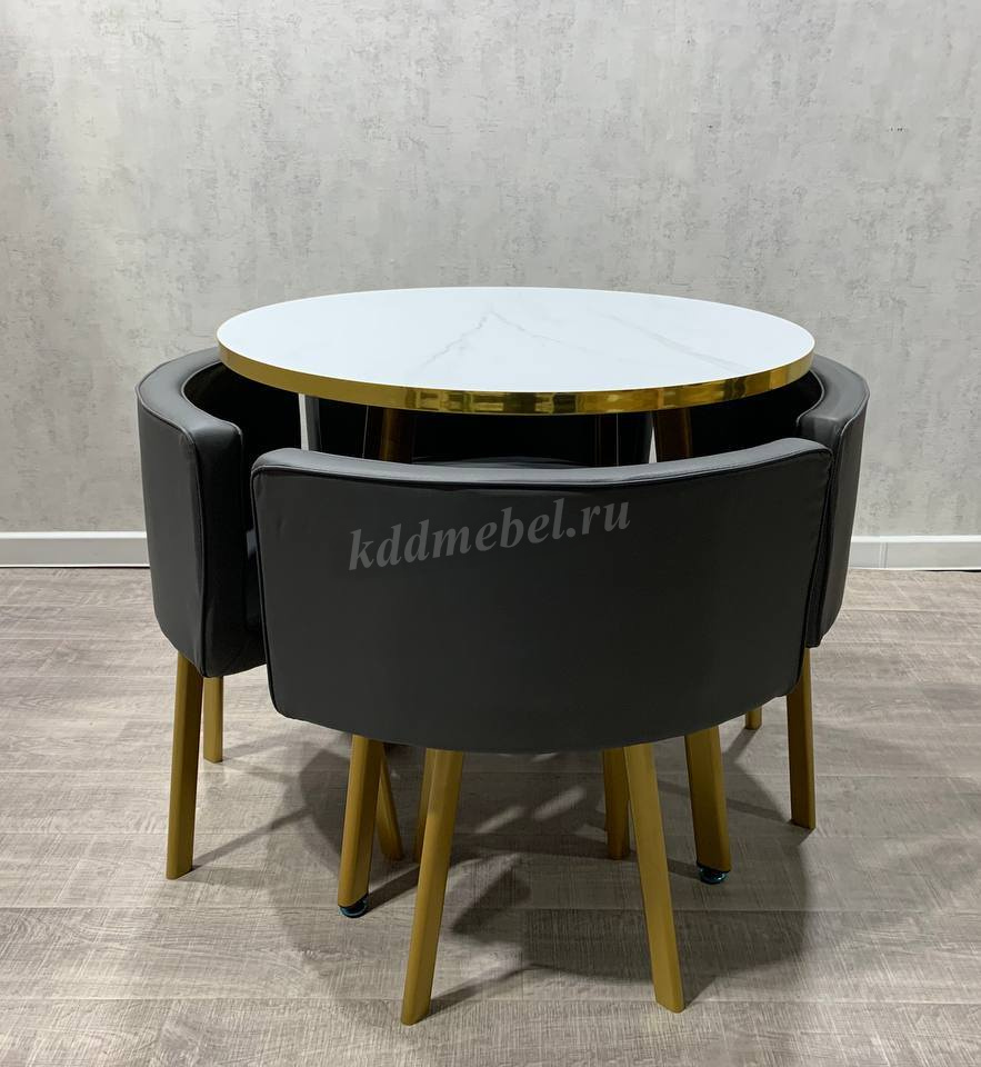 Обеденная группа DT/DC-805 (Белый мрамор/Серый/Каркас золотой) наличие товара: