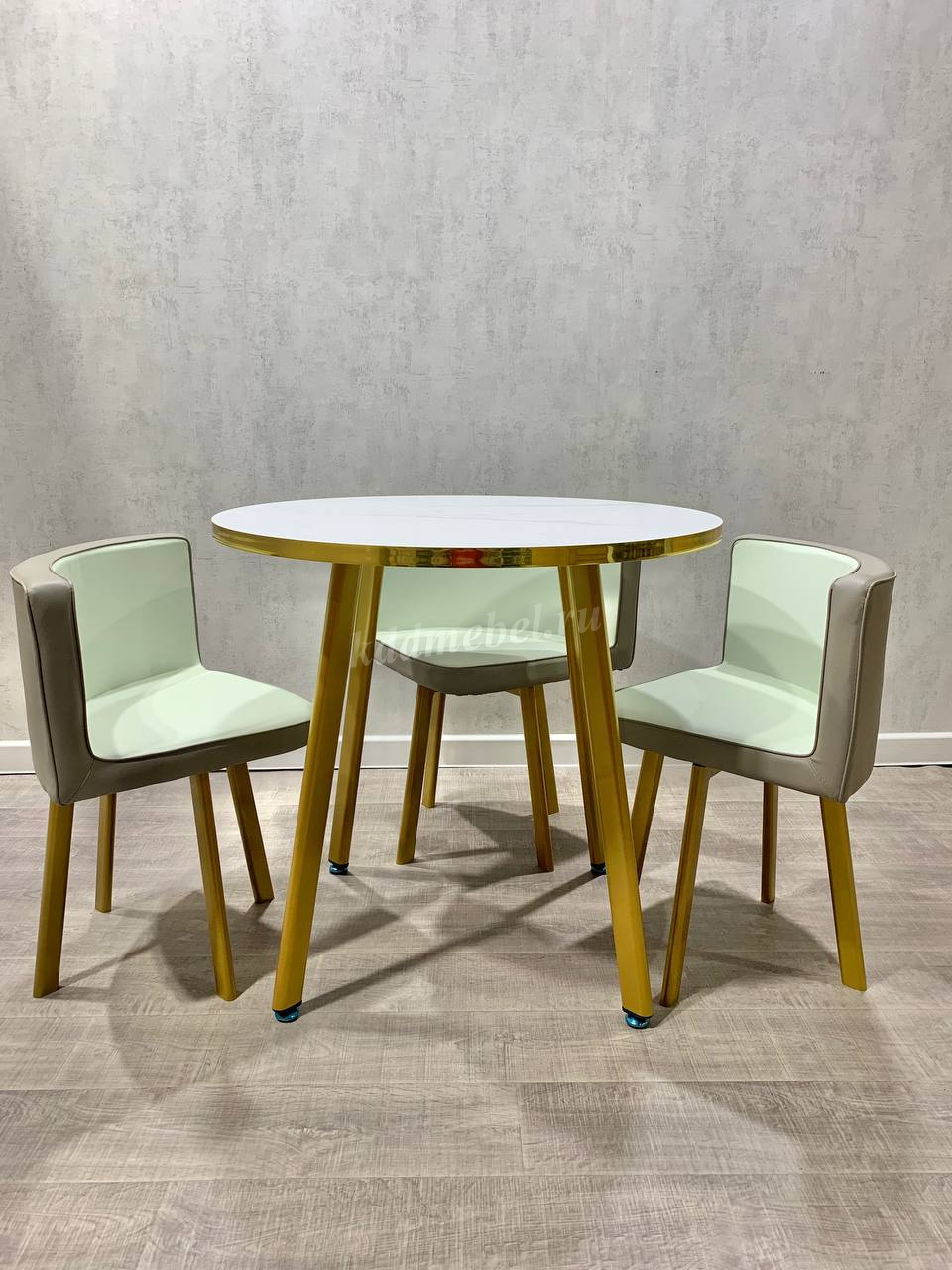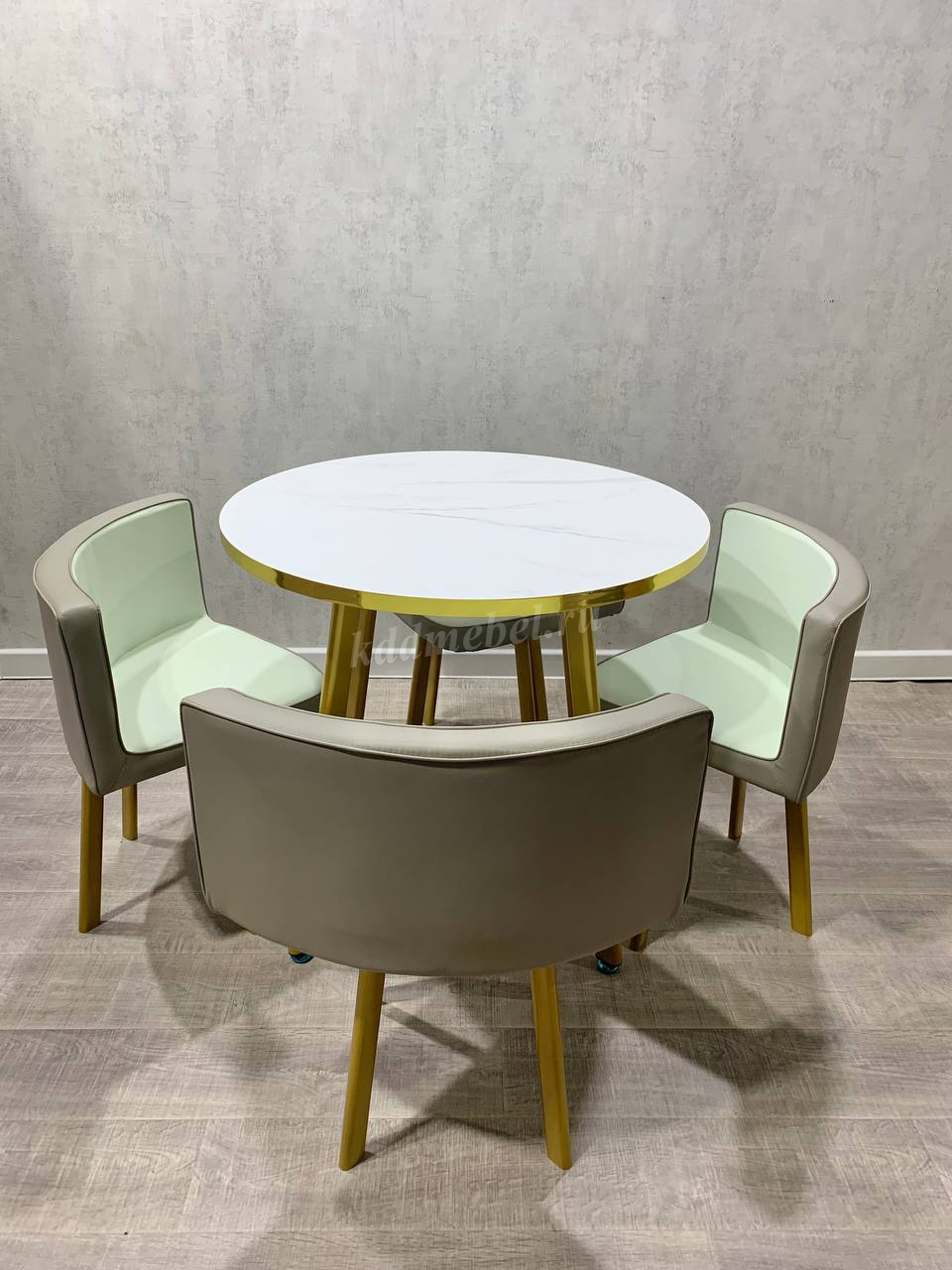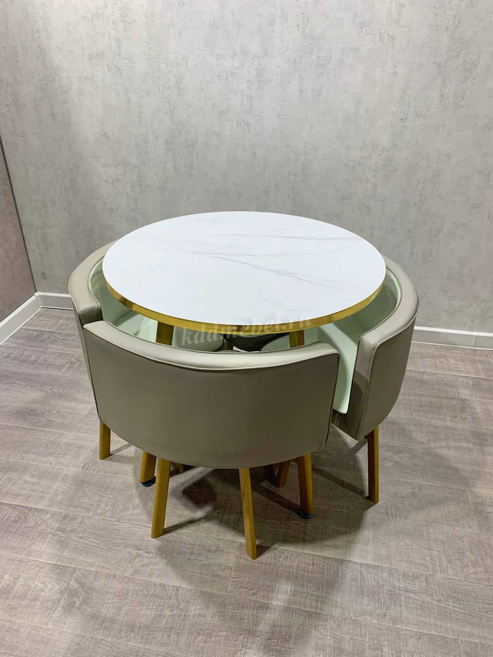 Обеденная группа DT/DC-805 (Белый мрамор/Светло-серый/Каркас золотой) наличие товара: