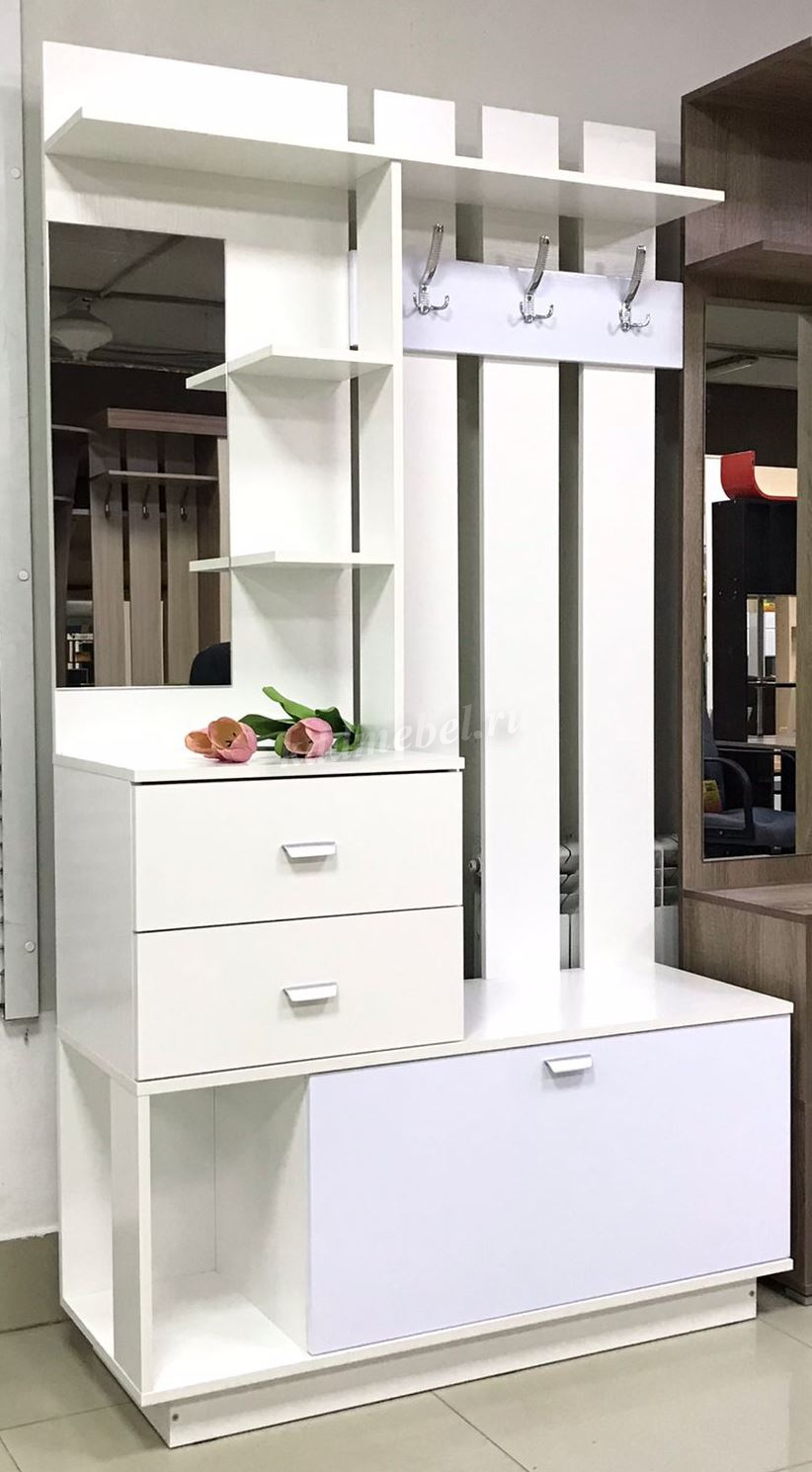 Эффективное решение для небольшой прихожей — это «Вега ». Несмотря на компактные размеры, мебель включает в себя всё необходимое для аккуратного хранения одежды и повседневных мелочей. Прихожая оснащена вместительным отсеком для обуви, ящиками, а также полками для аккуратного хранения повседневных мелочей и головных уборов.