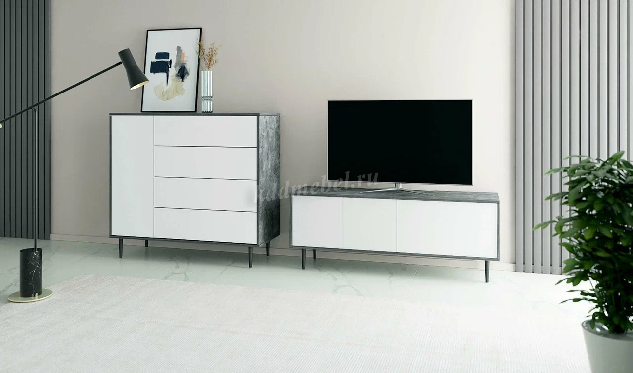 Описание Комод Некст-2 (Камень темный/Белый)