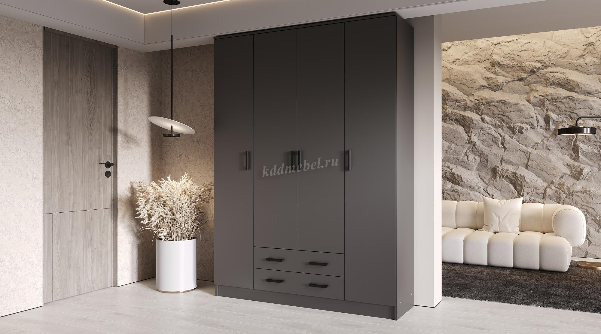 Помимо своей большой функциональности, четырехдверный шкаф Квадро без зеркал отлично впишется в любое помещение Вашей квартиры либо дома